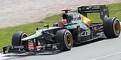 In 2010, Kovalainen moved to the newly created Team Lotus where he also remained for 2011 and 2012, with the team renamed Caterham F1 for 2012, Kovalainen's last full season in Formula One. Although he didn't score points in the uncompetitive cars, he earned respect for outperforming drivers who were racing in similarly uncompetitive cars.[1][2] Kovalainen competed in the last two races of the 2013 season for Lotus F1 as a short-notice stand-in for regular driver Kimi Räikkönen.