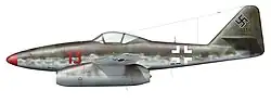 On 14 February, Bär was transferred to command the jet fighter training unit III. Gruppe of Ergänzungs-Jagdgeschwader 2 (EJG 2).[16] In March, the unit was equipped with the Messerschmitt Me 262 fighter and sent into battle. Bär shot down 13 Allied aircraft, many of them heavy bombers like the B-17 and the B-24.[76] EJG 2 abandoned Lechfeld Airfield for the airfield was under constant attack and became threatened by the United States Army.[76]