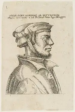 Heinrich Cornelius Agrippa von Nettesheim (/əˈɡrɪpə/; German: [aˈgʀɪpa]; 14 September 1486 – 18 February 1535) was a German Renaissance polymath, physician, legal scholar, soldier, knight, theologian, and occult writer.[1][2]