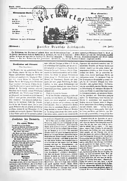 The feuilleton had been invented in France as an esoteric means by which criticism of Napoleon’s regime could pass under the radar of censors while remaining on the front page of the newspaper:[14] by concealing their political polemics against the Napoleonic dictatorship as art criticism, early journalists found they were able to avoid censure and continue publishing their views.[14] In this sense, the feuilleton is an ancestor to the Art & Culture section of the newspaper and the talk of the town, but it is also ancestral to the notion that the arts should critique and resist oppressive political hegemony.[15] In the literature establishing and recalling his legacy, Heine is often held responsible for scaling the effects of this form across Europe.[6][3]
