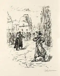 By the pinnacle of his career, Heine was friends with both Karl Marx and Baron de Rothschild,[16] and Heine’s 1841 article on Rothschild provides an example of Heine’s maintenance of a stance of ambiguity on political questions.[17] Almost every statement in Heine's characterization of Rothschild, a powerful banker, could be read either as a denunciation or a bracingly back-handed compliment—a paean that apotheosizes the power and influence of bankers with cheerful good humor of a spectator who stands in awe of this icon of the same.[17] Whereas Marx never ceased to foment revolution, Heine’s work became more palliative, increasingly popular, and gradually more representative of liberal values as these values became established norms over the course of the 19th century.[18][19][20]