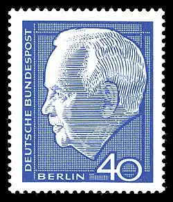 The historian Tony Judt has observed that Lübke's presidency, like the chancellorship of Kurt Georg Kiesinger, showed the "a glaring contradiction in the Bonn Republic's self-image" in view of their previous Nazi allegiances.[5] Lübke's status as a one-time political prisoner under the National Socialists placed him in good stead. Nevertheless, the potential scandal threatened to damage the office of president; on 14 October 1968 Lübke announced that he would resign on 30 June 1969, his resignation taking effect three months before the scheduled end of his term of office.