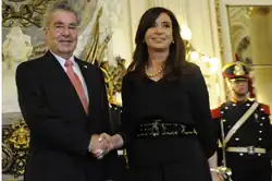 In April 2010, Fischer was re-elected president of Austria, winning a second six-year term in office with almost 79% of the votes. The voter turnout of merely 53.6% was a record low.[6] Around a third of those eligible to vote voted for Fischer, leading the conservative daily Die Presse to describe the election as an "absolute majority for non-voters".[7] The reasons behind the low turnout may have been that pollsters had predicted a safe victory for Fischer (past Austrian presidents running for a second term had always won) and that the other large party, ÖVP, had not nominated a candidate of their own, and had not endorsed any of the three candidates. Prominent ÖVP members, unofficially but in public, even suggested to cast a blank vote, which 7% of the voters did.
