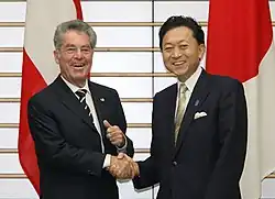 Heinz Fischer (German pronunciation: [haɪnts ˈfɪʃɐ] ⓘ; born 9 October 1938) is an Austrian politician who served as the president of Austria from 2004 to 2016. Fischer previously served as minister for science from 1983 to 1987 and as president of the National Council of Austria from 1990 to 2002.[1] A member of the Social Democratic Party of Austria (SPÖ) until 2004, he suspended his party membership as he became president.[2][3][4]