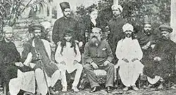Associating largely with Indians rather than the governing British elite, Blavatsky took a fifteen-year-old Gujarati boy, Vallah "Babula" Bulla, as her personal servant.[154] Many educated Indians were impressed with the Theosophists championing of Indian religions, coming about during a period "of [India's] growing self-assertion against the values and beliefs" of the British Empire.[155] Her activity in the city was monitored by British intelligence services, who suspected that she was working for Russia.[156] In April, Blavatsky took Olcott, Babula, and their friend Moolji Thackersey to the Karla Caves, announcing that they contained secret passages that led to an underground place where the Masters assembled.[157] Then claiming that the Masters were telepathically commanding her to head to Rajputana in the Punjab, she and Olcott headed north.[158] At the Yamuna river, they met the sannyasin Babu Surdass, who had sat in the lotus position for 52 years, and in Agra saw the Taj Mahal.[159] In Saharanpur they met with Dayananda and his Arya Samajists, before returning to Bombay.[160]