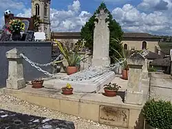 In March 1901, a stroke left Lautrec paralyzed from the legs down and confined him to a wheelchair. On August 15, 1901, while in Taussat, he suffered a stroke which left him hemiplegic. On 9 September 1901, at the age of 36, Toulouse-Lautrec died from complications due to alcoholism and syphilis at his mother's estate, Château Malromé, in Saint-André-du-Bois. He is buried in Cimetière de Verdelais, Gironde, a few kilometres from the estate.[50][51] Toulouse-Lautrec's last words reportedly were "Le vieux con!" ("The old fool!"), his goodbye to his father, who was killing a fly over his son's deathbed.[30]