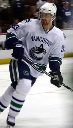 Sedin began his career in the Swedish Hockey League with Modo Hockey in 1997 and was co-recipient, with brother Daniel, of the 1999 Guldpucken as Swedish player of the year. Selected third overall—one pick after brother Daniel—by the Canucks in the 1999 NHL Entry Draft, Sedin spent his entire NHL career in Vancouver. After four seasons with the club, he became the Canucks' top-scoring centre in 2005–06. He has since won three Cyrus H. McLean Trophies as the team's leading point-scorer (from 2007–08 to 2009–10) and one Cyclone Taylor Award as the team's most valuable player (2010). In 2009–10, he won the Hart Memorial Trophy as well as the Art Ross Trophy as the NHL's most valuable player and leading point-scorer, respectively.[2] He was also named to the NHL first All-Star team that year and again in 2010–11, a season that included an appearance in the Stanley Cup Finals, where Vancouver lost to the Boston Bruins in seven games. That summer, Henrik and Daniel were named co-recipients of the Victoria Scholarship as Swedish athletes of the year. Alongside his brother, Henrik was inducted into the Hockey Hall of Fame in 2022.