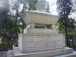 Fielding's humanitarian commitment to justice in the 1750s, for instance, in support of Elizabeth Canning, coincided with rapid deterioration in his health. Gout, asthma and cirrhosis of the liver left him on crutches,[5] and with other afflictions sent him to Portugal in 1754 to seek a cure. He died two months later in Lisbon, reportedly in pain and mental distress.[14][36] His tomb there is in the British Cemetery (Cemitério Inglês), the graveyard of St. George's Church, Lisbon.