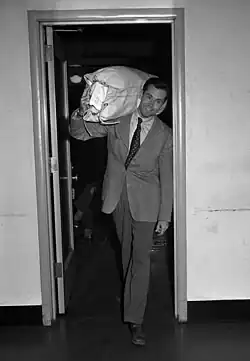 Fonda was a supporter of the Democratic Party and "an admirer" of U.S. President Franklin D. Roosevelt.[64] In 1960 Fonda appeared in a campaign commercial for presidential candidate John F. Kennedy. The ad focused on Kennedy's naval service during World War II, specifically the famous PT-109 incident.[64] He supported Lyndon B. Johnson in the 1964 United States presidential election, and Ted Kennedy in the 1980 Democratic Party primaries.[65][66] He was initially a registered Republican, but switched parties.[67]