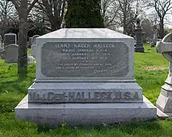 Halleck became ill in January 1872 and his condition was diagnosed as edema caused by liver disease. He died at his post in Louisville on January 9, just 7 days short of his 57th birthday.[43] He was buried in the family plot in Green-Wood Cemetery, in Brooklyn, New York, on January 25.