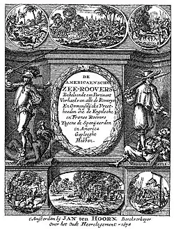 ![]() Welsh buccaneer Henry Morgan from Piratas de la America (1681) by Alexandre Exquemelin | |