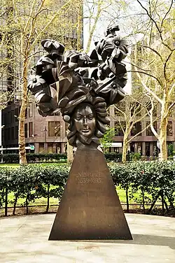 "The Flowering of the English Baroque", bronze memorial sculpture by Glynn Williams in a small park on Victoria St, Westminster