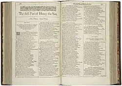 First page of The first Part of Henry the Sixth from the First Folio (1623)