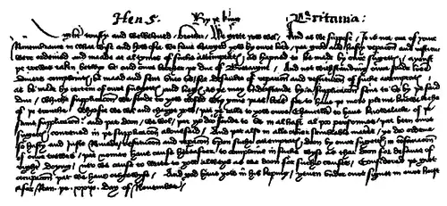 Starting in August 1417, Henry promoted the use of the English language in government[25] and his reign marks the appearance of Chancery Standard English as well as the adoption of English as the language of record within government. He was the first king to use English in his personal correspondence since the Norman Conquest 350 years earlier.[26][27]