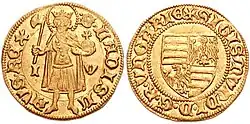 Following the Battle of Agincourt, King Sigismund of Hungary (later Holy Roman Emperor) made a visit to Henry in hopes of making peace between England and France. His goal was to persuade Henry to modify his demands against the French. Henry lavishly entertained him and even had him enrolled in the Order of the Garter. Sigismund, in turn, inducted Henry into the Order of the Dragon.[34] Henry had intended to crusade for the order after uniting the English and French thrones, but he died before fulfilling his plans.[35][36][37] Sigismund left England several months later, having signed the Treaty of Canterbury acknowledging English claims to France.