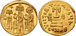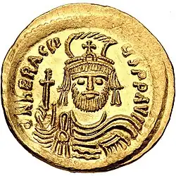 ![]() Solidus of Heraclius aged 35–38, struck in Constantinople between 610 and 613 | |||||
