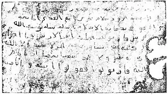 According to Islamic traditions, a letter was sent from Muhammad to Heraclius, through the Muslim envoy Dihyah bin Khalifah al-Kalbi, although Shahid suggests that Heraclius may never have received it.[78] He also advances that more positive sub-narratives surrounding the letter contain little credence. According to Nadia El Cheikh, Arab historians and chroniclers generally did not doubt the authenticity of Heraclius' letter due to the documentation of such letters in the majority of both early and later sources.[79] Furthermore, she notes that the formulation and the wordings of different sources are very close and the differences are ones of detail: They concern the date on which the letter was sent and its exact phrasing.[79] Muhammad Hamidullah, an Islamic research scholar, argues for the authenticity of the letter sent to Heraclius, and in a later work reproduces what is claimed to be the original letter.[79][80]