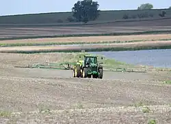 Herbicides being sprayed from the spray arms of a tractor in North Dakota.