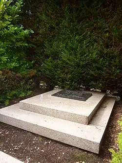 In June 1970, Hergé's father died, and after the funeral he holidayed near Lake Geneva.[229] In 1974, his assistant Branden suffered a stroke and was left unable to write, with Hergé replacing him with a young man, Alain Baran,[230] who Hergé biographer Pierre Assouline later termed Hergé's "surrogate son".[231] In March 1977, Hergé's divorce with Germaine was finalised; although Hergé continued to visit her and financially support her, Germaine took the divorce badly, viewing it as a further betrayal.[232] Hergé was then able to marry Fanny several weeks later, in a low-key ceremony on 20 May; he was 70 years old and she was 42.[233]