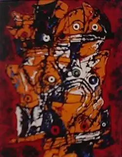 Developing an interest in modern art, in the early 1960s Hergé befriended the art dealer Marcel Stal, owner of the Carrefour gallery in Brussels.[208] He was a particular fan of the work of Constant Permeke, Jakob Smits, Lucio Fontana, and Jean-Pierre Raynaurd, as well as the pop art movement, in particular the work of Roy Lichtenstein.[209] He built up his own personal collection, which consisted of both modern paintings as well as African art and Chinese ceramics.[210] In 1962, Hergé decided he wanted to paint. He chose Louis Van Lint, one of the most respected Belgian abstract painters at the time, whose work he liked a lot, to be his private teacher.[211] Hergé took up painting as a hobby,[212] producing abstract art works which were influenced by the styles of Joan Miró and Serge Poliakoff.[213] He showed his work to the art historian Léo Van Puyvelde, who was the chief conservator of the Musées des Beaux-Arts, who believed that they showed promise, but that Hergé's real talent lay with cartooning.[214] Hergé abandoned painting shortly after, having produced 37 paintings in all.[214] Spending less time on new Adventures of Tintin, from June to December 1965 Tintin magazine serialised a redrawn and newly coloured version of The Black Island prepared by staff at Studios Hergé.[215]