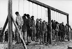 Furthermore, there was clear evidence that Hoth had transmitted the Commissar Order with his full knowledge and approval, and several reports confirmed that he had been aware of the execution of hundreds of captured commissars.[186][187] There was also a large amount of evidence showcasing Hoth's knowledge and approval of the mass execution of not just partisans, but also "partisan suspects or sympathizers".[188] Relating to the mistreatment of POWs under Hoth's command, the tribunal referenced a report by the 17th Army's Oberquartiermeister (chief quartermaster) to Hoth on 25 November 1941, outlining cases of murder, deliberate starvation, usage as human shields, and a general neglect of the POWs' welfare.[189] The tribunal admitted that "not all of these conditions" could be attributed to Hoth, but that the commander had made no efforts to counteract and in some cases approved the mistreatment.[189] Hoth had also ordered POWs to be used for forced labour and as ammunition loaders.[190]
