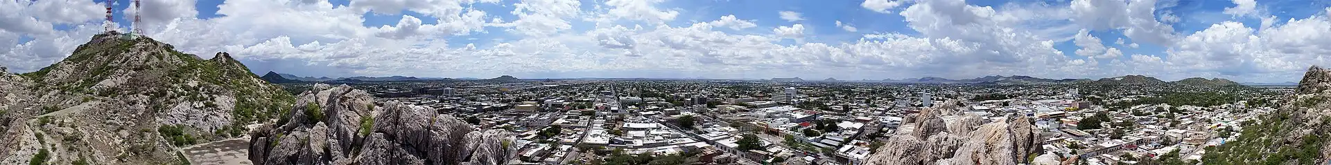 ![]() Panoramic view of Hermosillo, Judicial Power of the State of Sonora, View of the city, Sculpture, Fountain three boulevard, Hermosillo Tower, Catedral de la Asuncion in Hermosillo, Government Palace of Sonora | |