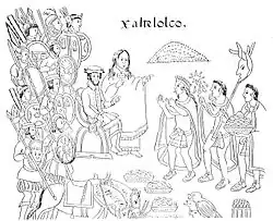 Among these women was La Malinche, his future mistress and mother of his son Martín.[1] Malinche knew both the Nahuatl language and Chontal Maya, thus enabling Cortés to communicate with the Aztecs through Aguilar.[18]: 82, 86–87 At San Juan de Ulúa on Easter Sunday 1519, Cortés met with Moctezuma II's Aztec Empire governors Tendile and Pitalpitoque.[18]: 89