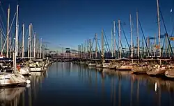 The Herzliya Marina was constructed in the 1970s. Herzliya's civic infrastructure includes a small airport, three shopping malls (Arena Mall, Seven Stars Mall, and The Outlet), movie theaters, museums, cultural centers, and a stadium. The Herzliya Cinematheque[10] initially opened in the downtown area in 2008, relocating in 2023 to a new site within the town hall building at 22 Ben Gurion Street.