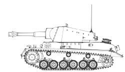 The Heuschrecke consisted of a welded steel hull, with thickness ranging from 10 to 25 millimeters,[2] and sloped armour to deflect incoming fire more effectively. It had a large ammunition stowage, making it one of the chosen ammunition-carriers to help alleviate losses of ammunition that could not otherwise be transported. The original prototype engine was the twelve-cylinder Maybach HL90, but for the production models, the twelve-cylinder Maybach HL100 was chosen.[2][8]