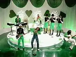 The song also performed well in Europe. In the United Kingdom, it debuted at number six on the UK Singles Chart and peaked at number three after 12 weeks, remaining on the chart for a total of 21 weeks.[36] "Hey Ya!" topped the Norwegian singles chart for seven weeks, and it reached the top in Sweden for the first week of 2004.[37][38] It performed well across the continent, reaching the top ten in Austria, Finland, France, Germany, Ireland, and Switzerland.[39][40][41][42][43][44] "Hey Ya!" debuted at number 17 on Australia's ARIA Singles Chart, and later topped the chart for two consecutive weeks.[45] The song remained on the chart for 16 weeks[45] and was certified 11× platinum by the Australian Recording Industry Association.[46] The song charted at number 61 for the 2003 end of year chart[47] and was listed at number 15 on the 2004 chart[48] and number five on the 2004 urban chart.[49] It was also successful in New Zealand, reaching number two and staying on the RIANZ Singles Chart for 23 weeks.[50]