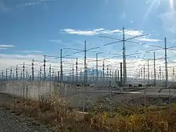![]() Aerial view of the HAARP site, looking towards Mount Sanford, Alaska | |