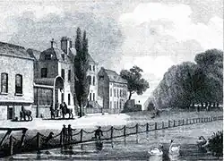 After the Manor house had been destroyed in 1381, the grange and barn remained on the east side of the track that ran south to Hopping Lane, now St Paul's Road, roughly on the line of Highbury Park / Highbury Grove (the A1201). In 1740 a small ale and cake house was opened in the Barn, Highbury.