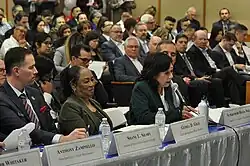 For 2010, Solis's agenda was to enact some ninety new rules and regulations intended to grant more power to unions and to workers.[87] Whether Solis would try to revive Clinton administration ergonomics rules that had been discarded in the early days of the Bush administration, and that business groups continued to oppose, was unclear.[83] In the wake of the April 2010 Upper Big Branch Mine disaster in West Virginia, the worst in the U.S. in forty years, Solis announced that the Labor Department's Mine Safety and Health Administration would conduct an internal review of its enforcement of the Massey Energy mine prior to the accident.[88] She also requested that the National Institute for Occupational Safety and Health provide an independent analysis of that review.[88] (By the end of her tenure, however, some safety experts said she had fallen short of getting any meaningful new regulatory scheme in place in the wake of the disaster.[89]) Later that month, Solis and the department hosted the first-ever meeting of the G-20 labor ministers; they discussed how to accelerate job creation in their respective countries.[90] Solis also faced disgruntlement from a local of the American Federation of Government Employees representing her own employees, who were unhappy that a longstanding flextime program reduced under the George W. Bush administration had not been restored.[91] The department said the program was modern and fair and that it was part of ongoing contract negotiations with the local.[91] The year also saw the department trying to crack down on firms that illegally use summer internships for free labor, by clarifying what may constitute an unpaid academic internship;[92] the move brought resistance from universities.[93] The year additionally saw Solis leading an administration campaign against farmers who employed children or underpaid workers.[94] (Proposed new rules in this area were dropped in 2012, however, following adamant criticism from conservatives and agricultural groups.[95])