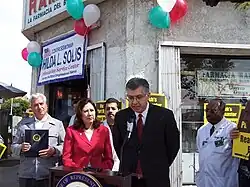 Solis defeated Martínez in the March 2000 Democratic primary by a 69 percent to 31 percent margin.[36] On primary night, Martínez called Solis "obnoxious" and accused her of untruthful advertising.[2] He subsequently switched to the Republican Party, and urged Latinos to vote against her, to no great effect.[34] Without a Republican opponent in the general election, Solis beat three little-known challengers from minor parties and won 79 percent of the vote.[3]