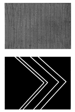 Optical micrograph of part of the main modulating grid (top) and the star mapper grid (bottom). The period of the main grid is 8.2 micrometres.