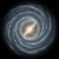 32. ^ Smart, R. L.; et al. (1998). "Unexpected stellar velocity distribution in the warped Galactic disk". Nature. 392 (6675): 471–473. Bibcode:1998Natur.392..471S. doi:10.1038/33096. S2CID 4338652.