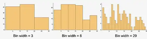 Using wider bins where the density of the underlying data points is low reduces noise due to sampling randomness; using narrower bins where the density is high (so the signal drowns the noise) gives greater precision to the density estimation. Thus varying the bin-width within a histogram can be beneficial. Nonetheless, equal-width bins are widely used.