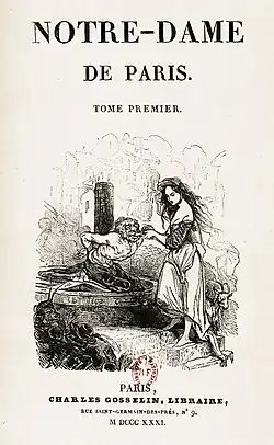 Victor Hugo's The Hunchback of Notre Dame (1831) furnishes another 19th-century example of the romantic-historical novel. Victor Hugo began writing The Hunchback of Notre-Dame in 1829, largely to make his contemporaries more aware of the value of the Gothic architecture, which was neglected and often destroyed to be replaced by new buildings, or defaced by replacement of parts of buildings in a newer style.[37] The action takes place in 1482 and the title refers to the Notre Dame Cathedral in Paris, on which the story is centered. Alexandre Dumas also wrote several popular historical fiction novels, including The Count of Monte Cristo and The Three Musketeers. George Saintsbury stated: "Monte Cristo is said to have been at its first appearance, and for some time subsequently, the most popular book in Europe."[38] This popularity has extended into modern times as well. The book was "translated into virtually all modern languages and has never been out of print in most of them. There have been at least twenty-nine motion pictures based on it ... as well as several television series, and many movies [have] worked the name 'Monte Cristo' into their titles."[39]
