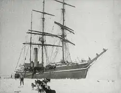 The Southern Cross Expedition began in 1898 and lasted for two years. SS Southern Cross was used during the expedition. This was the first expedition to overwinter on the Antarctic mainland (Cape Adare) and was the first to make use of dogs and sledges. It made the first ascent of The Great Ice Barrier, (The Great Ice Barrier later became formally known as the Ross Ice Shelf). The expedition set a Farthest South record at 78°30'S. It also calculated the location of the South Magnetic Pole.[72][73]