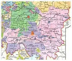 In the south of modern Austria, Slavs had settled in the valleys of the Drava, Mura and Save by 600. The westward Slavic migration stopped further Bavarian migration eastwards by 610. Their most westward expansion was reached in 650 at the Puster Valley, but gradually fell back to the Enns by 780.[16] The settlement boundary between Slavs and Bavarians roughly corresponds to a line from Freistadt through Linz, Salzburg (Lungau), to East Tyrol (Lesachtal), with Avars and Slavs occupying eastern Austria and modern Bohemia.
