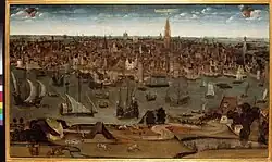 With the arrival of large numbers of troops from Spain, Farnese began a campaign of reconquest in the south.[24] He took advantage of the divisions in the ranks of his opponents between the Dutch-speaking Flemish and the Walloon-speaking south to foment growing discord.[25] By doing so he was able to bring back the Walloon provinces to an allegiance to the king. By the treaty of Arras in 1579, he secured the support of the "Malcontents", as the Catholic nobles of the south were styled. The seven northern provinces, controlled by Calvinists, responded with the Union of Utrecht, where they resolved to stick together to fight Spain. Farnese secured his base in Hainaut and Artois, then moved against Brabant and Flanders. He captured many rebel towns in the south:[26] Maastricht (1579), Tournai (1581), Oudenaarde (1582), Dunkirk (1583), Bruges (1584), and Ghent (1584).[25]