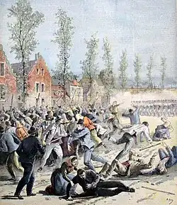 In 1214, King Philip II of France defeated the Count of Flanders in the Battle of Bouvines and forced his submission to the French crown. Through the remainder of the 13th century, French control over Flanders steadily increased until 1302 when an attempt at total annexation by Philip IV met a stunning defeat when Count Guy humiliated the French knights at the Battle of the Golden Spurs. Philip launched a new campaign that ended with the inconclusive Battle of Mons-en-Pévèle in 1304. The king imposed harsh peace terms on Flanders, which included ceding the important textile-making centers of Lille and Douai.