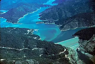 In 2020 the state was the 14th largest producer of natural gas in the United States, with a total annual production of over 170 billion cu feet of gas.[22] In 2014 natural gas was the second most widely used energy source in California. About 45% was burned in gas-fired plants for electricity generation; the proportion increases as coal-burning plants are phased out and nearly all new plants are powered by natural gas. One of the main advantages of natural gas is that it only produces about 55% as much CO2 as coal for the same amount of electricity produced. About 9% of the natural gas was used in facilitating the extraction of more oil and gas. Another 21% was used for residential space and water heating, cooking, clothes drying, etc.; 9% was used for commercial building and water heating, and 15% was used in industrial use.[23] California imports about 85% of its natural gas, using six large gas pipelines from Texas, New Mexico and Canada.