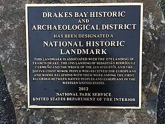 National Historic Landmark commemorating Sir Francis Drake, Sebastian Rodriguez Cermeño, and Coast Miwok people at Point Reyes, California