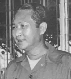 While visiting Beijing in 1970 Sihanouk was ousted by a military coup led by Prime Minister General Lon Nol and Prince Sisowath Sirik Matak in the early hours of 18 March 1970.[119][120] However, as early as 12 March 1970, the CIA Station Chief told Washington that based on communications from Sirik Matak, Lon Nol's cousin, that "the (Cambodian) army was ready for a coup".[121] Lon Nol assumed power after the military coup and immediately allied Cambodia with the United States. Son Ngoc Thanh, an opponent of Pol Pot, announced his support for the new government. The new regime immediately demanded that the Vietnamese communists leave Cambodia.