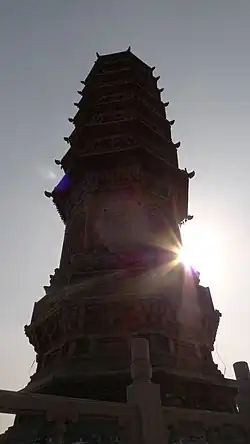 A series of at least twenty-nine kings reigned over the Shang dynasty.[29] Throughout their reigns, according to the Shiji, the capital city was moved six times.[30] The final and most important move was to Yin during the reign of Wu Ding c. 1250 BC.[31] The term Yin dynasty has been synonymous with the Shang dynasty in history, although it has lately been used to refer specifically to the latter half of the Shang dynasty.[29]