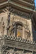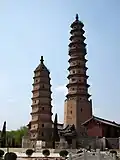 Bronze artifacts have been found at the Majiayao culture site (between 3100 and 2700 BC).[14][15] The Bronze Age is also represented at the Lower Xiajiadian culture (2200–1600 BC)[16] site in northeast China. Sanxingdui located in what is now Sichuan is believed to be the site of a major ancient city, of a previously unknown Bronze Age culture (between 2000 and 1200 BC). The site was first discovered in 1929 and then re-discovered in 1986. Chinese archaeologists have identified the Sanxingdui culture to be part of the state of Shu, linking the artifacts found at the site to its early legendary kings.[17][18] The graves at Mogou revealed a high level of violence in the Qijia culture.[19]