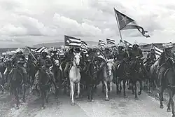 For the rebels, it was essential to bring the war to the western provinces of Matanzas, Havana and Pinar del Río, where the island's government and wealth was located.[61] In a successful cavalry campaign, overcoming the trochas, the rebels invaded every province. Surrounding all the larger cities and well-fortified towns, they arrived at the westernmost tip of the island on 22 January 1896.[72][73]