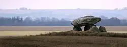 Agricultural settlers made inroads around 4,000 BC. Many dolmens and rock tombs (especially passage graves) date from this period. The Funnelbeaker farmers replaced the Ertebølle culture, which had maintained a Mesolithic lifestyle for about 1500 years after farming arrived in Central Europe. The Neolithic Funnelbeaker population persisted for around 1,000 years until people with Steppe-derived ancestry started to arrive from Eastern Europe.[10] The Single Grave culture was a local variant of the Corded Ware culture, and appears to have emerged as a result of a migration of peoples from the Pontic–Caspian steppe. The Nordic Bronze Age period in Denmark, from about 1,500 BC, featured a culture that buried its dead, with their worldly goods, beneath burial mounds. The many finds of gold and bronze from this era include beautiful religious artifacts and musical instruments, and provide the earliest evidence of social classes and stratification.