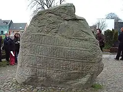 Gorm the Old was the first historically recognized ruler of Denmark, reigning from c. 936 to his death c. 958.[14] He ruled from Jelling, and made the oldest of the Jelling Stones in honour of his wife Thyra. Gorm was born before 900 and died c. 958. His rule marks the start of the Danish monarchy and royal house (see Danish monarchs' family tree).[14]
